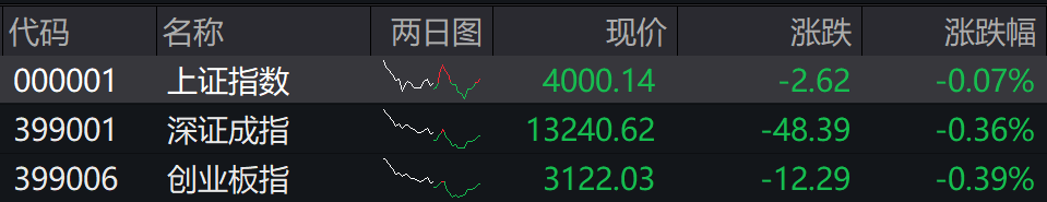 死心收盘,沪指跌0.07%,深成指跌0.36%,创业板指跌0.39%。